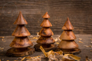 In diesem Jahr drechsel ich wieder große und kleine Weihnachtsbäume z.B. aus Apfel-, Kirsch-, Eichen-, Eschen- und Lebensbaumholz.
