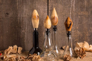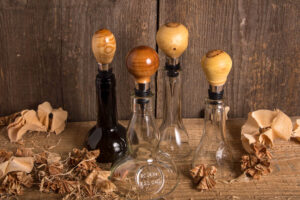Aus meinen schönen, übrig gebliebenen Holzstückchen habe ich diese Verschlüsse gedrechselt. Sie passen auf fast alle Flaschen und sehen ja viiiiiiel besser aus als z. B. ein Plastikverschluss.